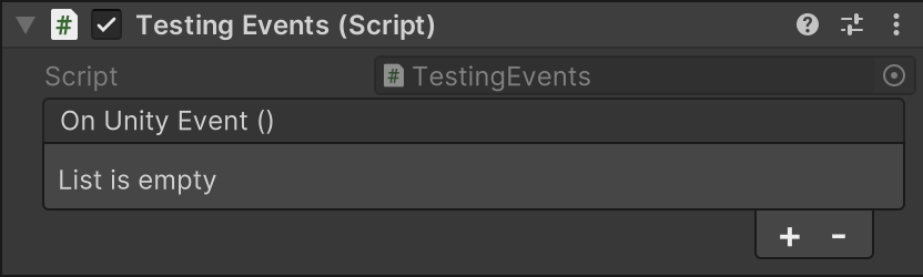 首先,我们在 Unity 中新建一个场景,创建第一个脚本 TestingEvents.cs,并将该脚本绑定在场景中。